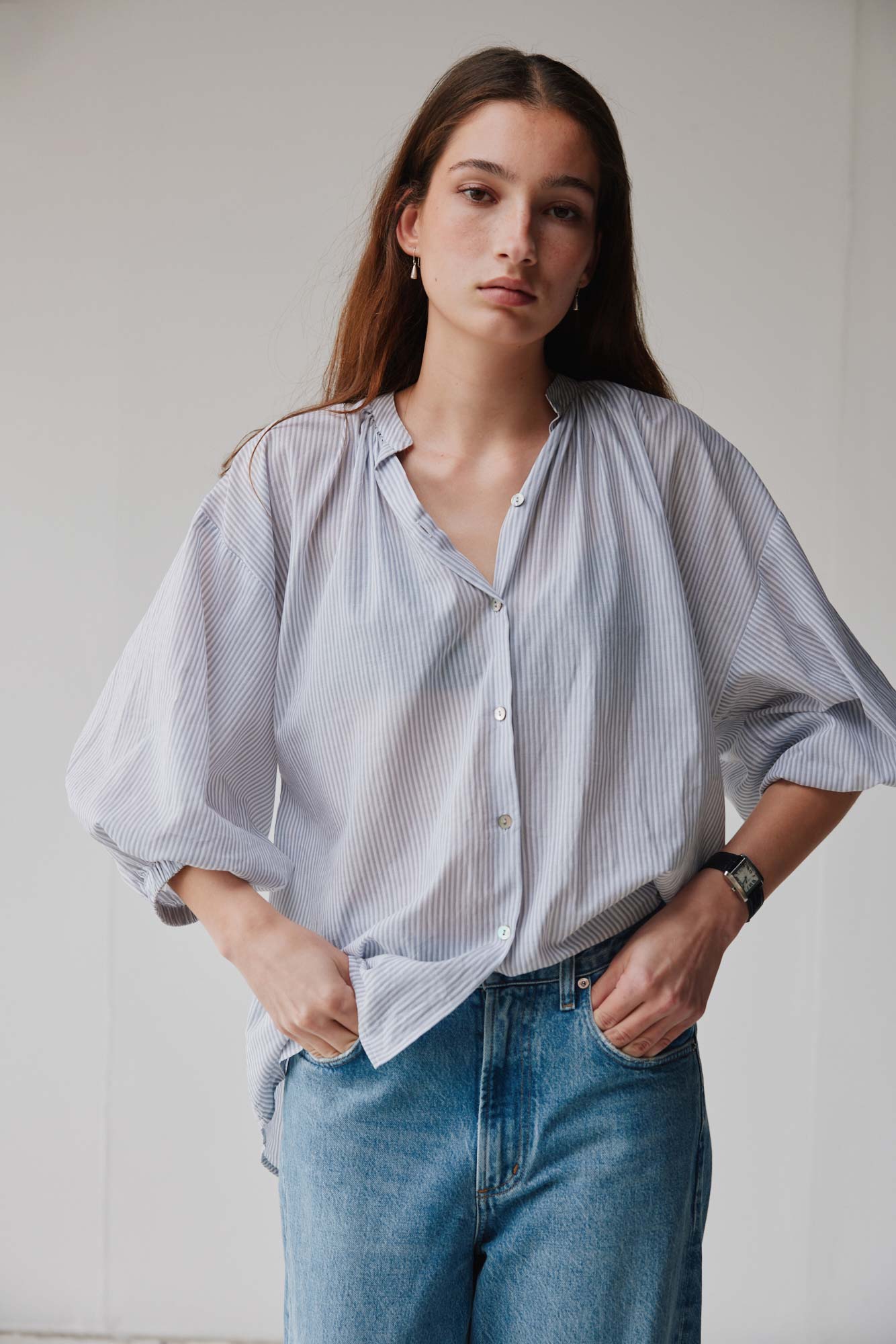There’s nothing ordinary about our Everyday Blouse. Beautifully relaxed and easy-to-wear, with a flat collar, three-quarter balloon sleeves and shell buttons, it pairs effortlessly with everything from denim to diamonds. For work, date night or running errands at the weekend, it elevates simple to chic.